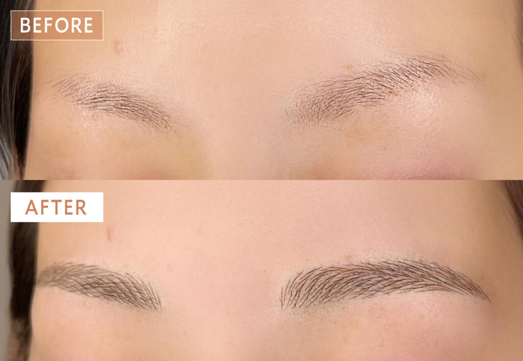 アートメイクで繊細な毛並みを表現し、眉尻まで自然に整ったバランスの良い眉に仕上げています。