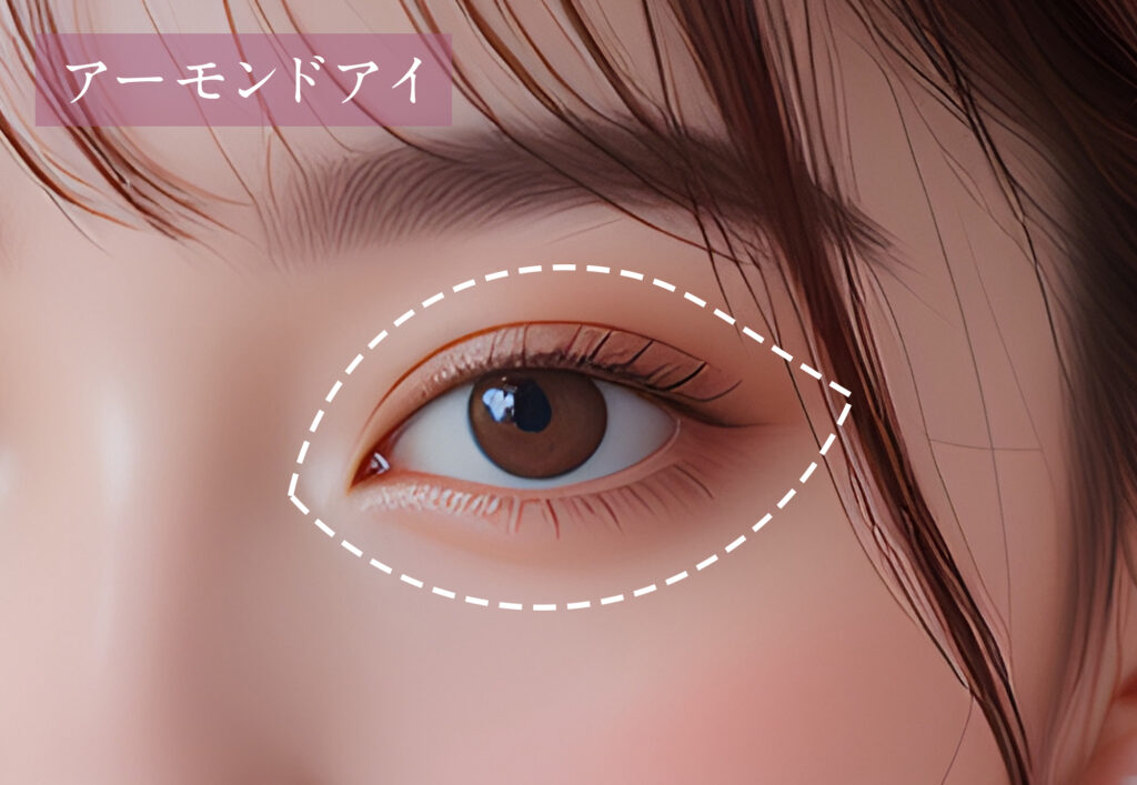 アーモンドアイは縦横のバランスが整い、顔全体との調和がとれた目元が特徴です。