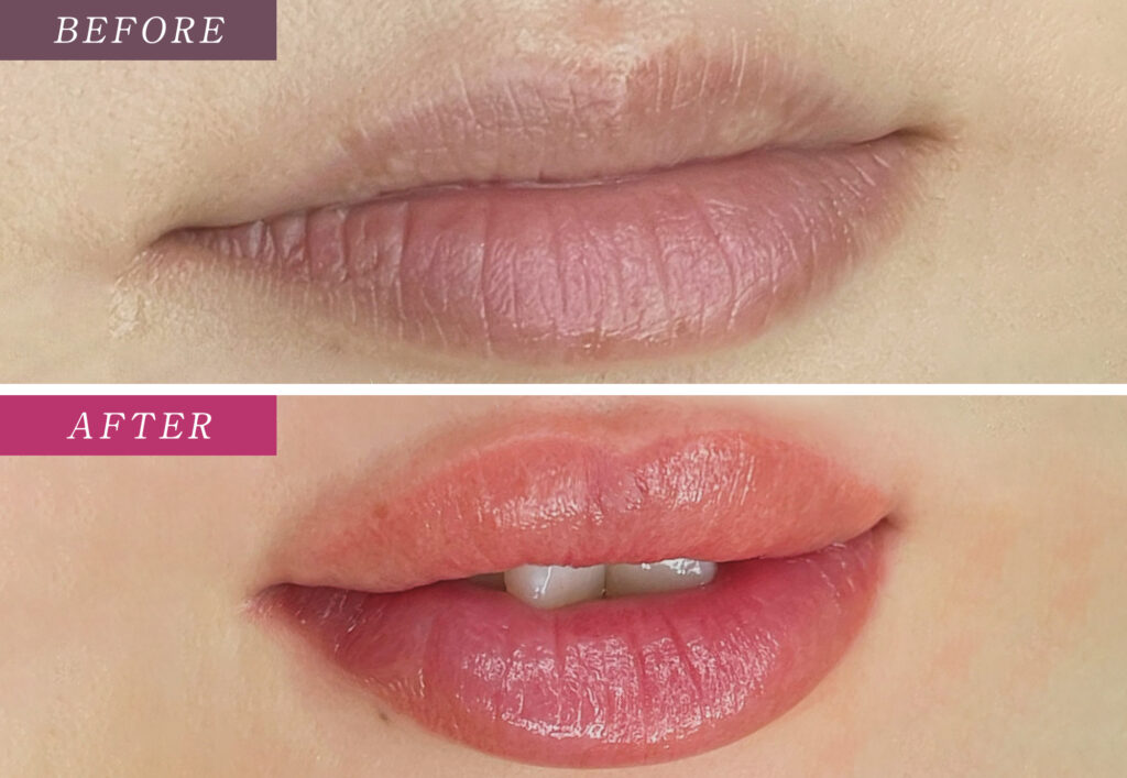 とくに上唇の中央に自然なボリュームを持たせ、下唇は輪郭を整えることで、唇全体の縦比率が安定し、中顔面短縮を意識したバランスにつながります。