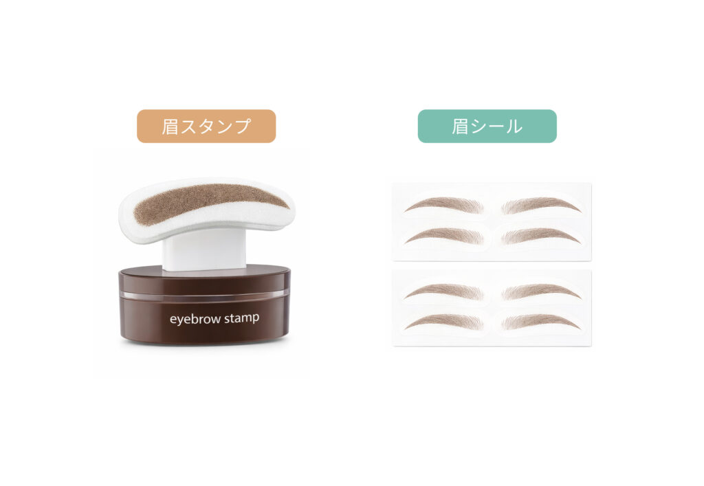 一般的な眉毛テンプレートはガイドとして使い、自分のアイブロウで描くのが基本ですが、シールやスタンプタイプは貼る・押すといった動作で眉の形を表現できる点が特徴です。シールタイプは貼るだけで眉の形をガイドでき、スタンプタイプは押すことで眉の形そのものを再現しやすくなります。